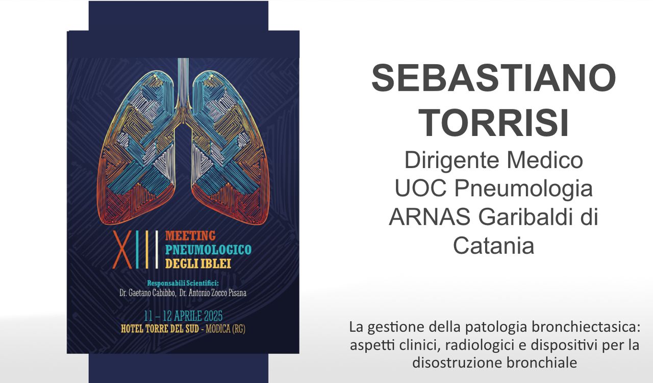 Il Dott. Sebastiano Torrisi è specialista in Pneumologia ed è Dirigente Medico presso l'Unità Operativa Complessa di Pneumologia dell'Ospedale Garibaldi - Nesima di Catania. Ha svolto attività clinica e di ricerca presso il “Centro di Riferimento per le Interstiziopatie e Malattie Rare del Polmone” di Catania. Vincitore di Research Fellowship Internazionali, ha perfezionato gli studi presso la Thoraxklinik dell’Università di Heidelberg in Germania, presso l'University of California di San Francisco in California e presso l'Erasmus University Medical Center di Rotterdam. E' autore di oltre 60 lavori scientifici, relatore in numerosi congressi nazionali e internazionali e revisore di numerose riviste scientifiche internazionali.